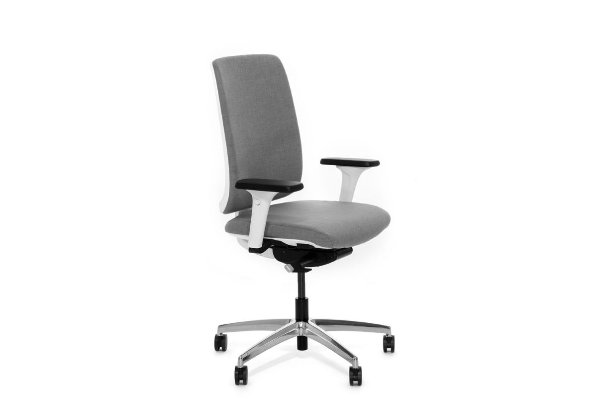 — белые пластиковые части, база — полированный алюминий, 1D подлокотники