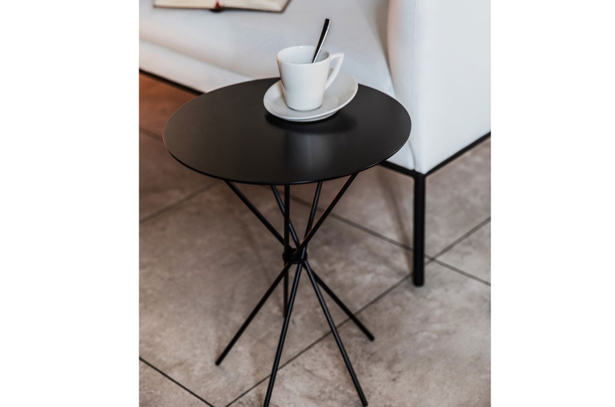 Тонкие металлические опоры-лучи кофейного столика Bora, пересекающиеся в одной точке, делают стол легким и словно танцующим. Модель выполнена полностью из металла, крашеного методом порошкового покрытия. Интересно отметить, что коллекция названа именем сильного порывистого ветра — бора, дующим зимой с Италии на Адриатику.