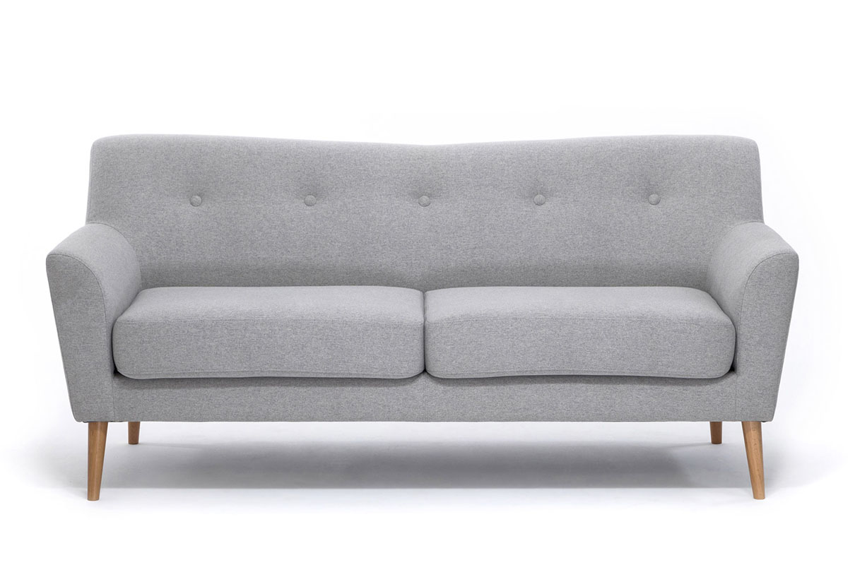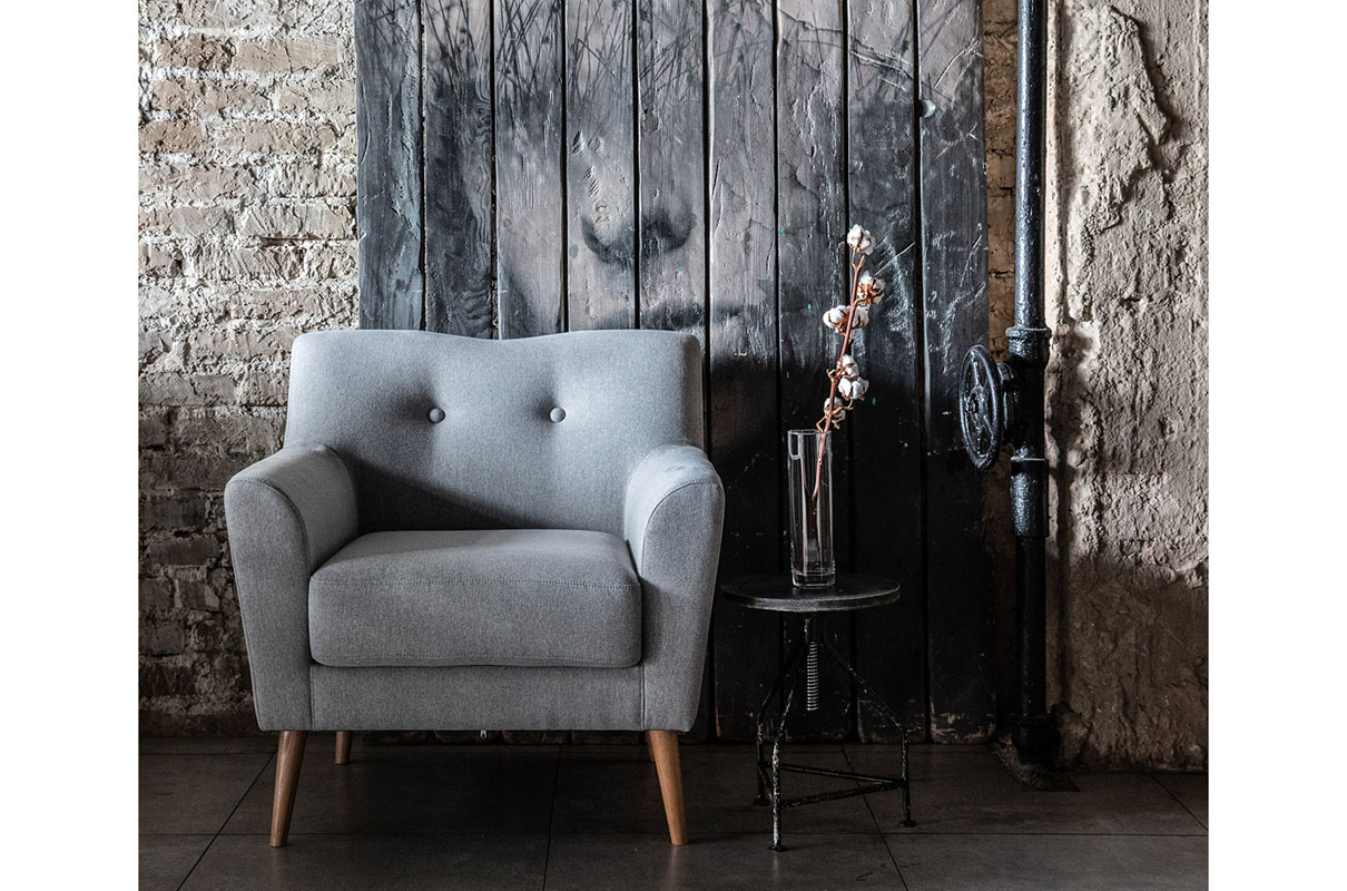 Коллекция Lamella в складском ассортименте представлена трехместным диваном и креслом с тканевой обивкой. Опоры - натуральный бук. Обивка — жаккардовая ткань серого цвета, состав — 100% полиэстер, мягкая на ощупь и износостойкая (более 80 000 циклов на тесте Мартиндейла). Подушки декорированы пуговицами.
