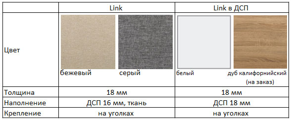 - в ДСП - в белом; в цвете калифорнийский дуб (на заказ).